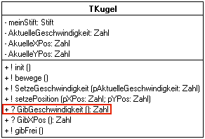 Ergänzen wir auch die Kugelklasse um einen Anfrage für die Geschwindigkeit: