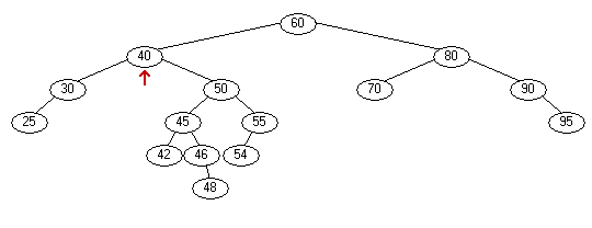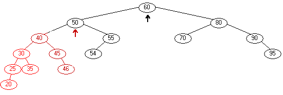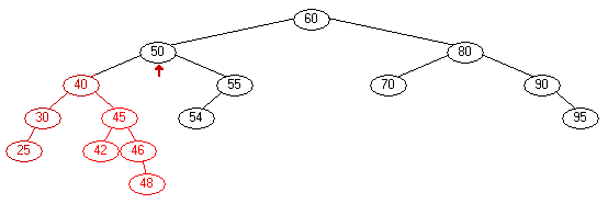 Der linke Teilbaum von 50 , also der mit der Wurzel 40 (oben rot) ist zu