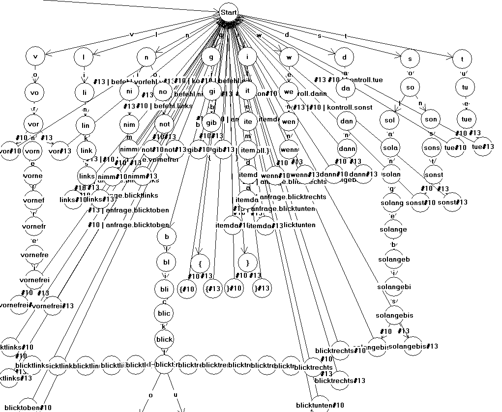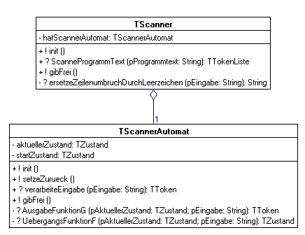 Zeilenumbrüche entfernen In Kleinbuchstaben umwandeln Programmtext bis zum ersten Leerzeichen kopieren und an den ScannerAutomaten weitergeben Wenn die Eingabe erkannt wurde dann wird der Token zur Tokenliste hinzugefügt. Den bereits abgearbeiteten Teil vom Programmtext abschneiden |