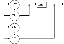 Damit die Sprache mit endlichen Automaten erkennbar bleibt, dürfen Wiederholungen keine Wiederholungen enthalten. Dies ist bei folgenden Syntaxdiagrammen gegeben: