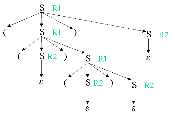 (e bedeutet, dass das Nichtterminal S durch gar nichts ersetzt wird.)